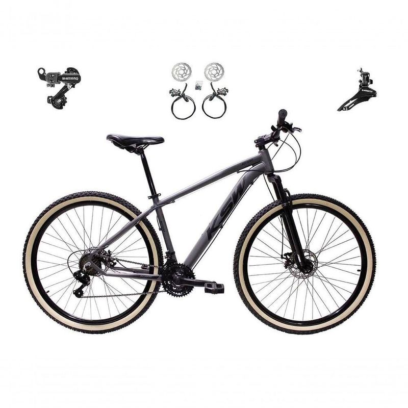 Bicicleta Aro 29 Ksw Xlt 24v K7 Câmbios Shimano Freio Hidráulico Garfo Trava Pneu Faixa - Grafite Tam.17