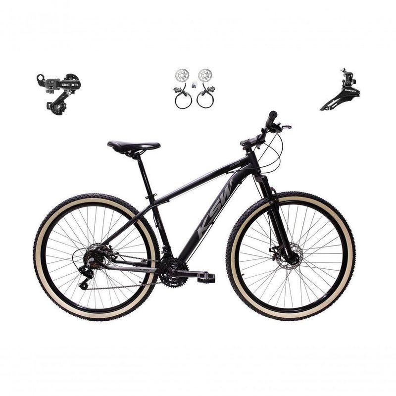 Bicicleta Aro 29 Ksw Xlt 24v K7 Câmbios Shimano Freio Hidráulico Garfo Trava Pneu Faixa - Preto/prata Tam.15