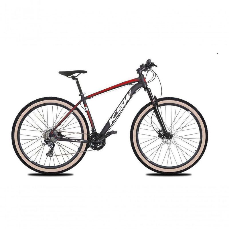 Bicicleta Aro 29 Ksw Xlt 24v K7 Câmbios Shimano Freio Hidráulico Garfo Trava Pneu Faixa - Preto/vermelho/branco Tam.19