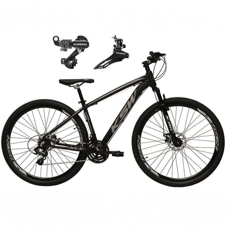 Bicicleta Aro 29 Ksw Xlt Alumínio 24v Câmbios Shimano Garfo Suspensão - Preto/prata Tam.19