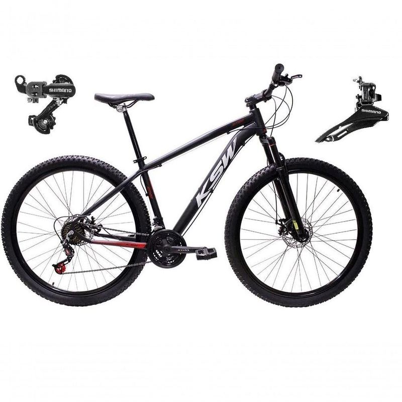 Bicicleta Aro 29 Ksw Xlt Alumínio 24v Câmbios Shimano Garfo Suspensão - Preto/vermelho/branco Tam.17