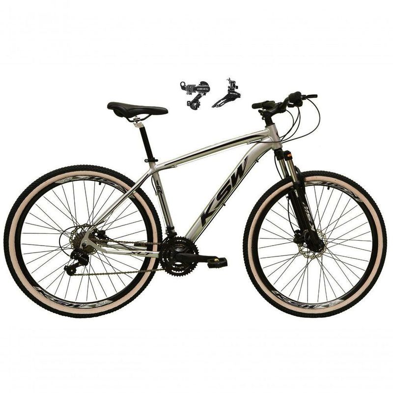 Bicicleta Aro 29 Ksw Xlt Alumínio 24v Câmbios Shimano Garfo Suspensão Pneu Faixa Bege - Cinza Tam.15