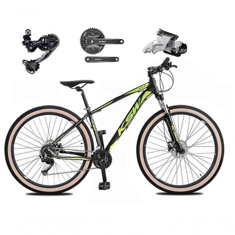 Bicicleta Aro 29 Ksw Xlt Deore E Altus 27v Freio Hidráulico Garfo Trava Pneu Faixa Bege - Preto/verde Tam.17
