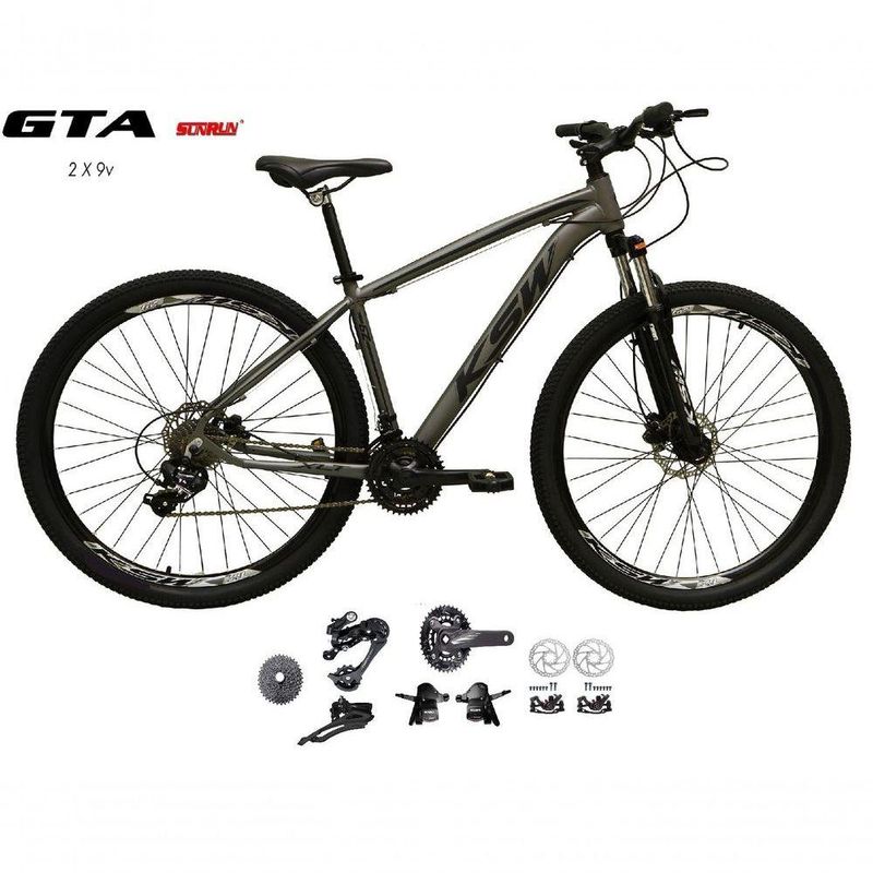 Bicicleta Aro 29 Ksw Xlt Kit 2x9 Gta Sunrun Freio Disco K7 11/36 Pedivela 24/38d Garfo Com Trava - Grafite Tam.15
