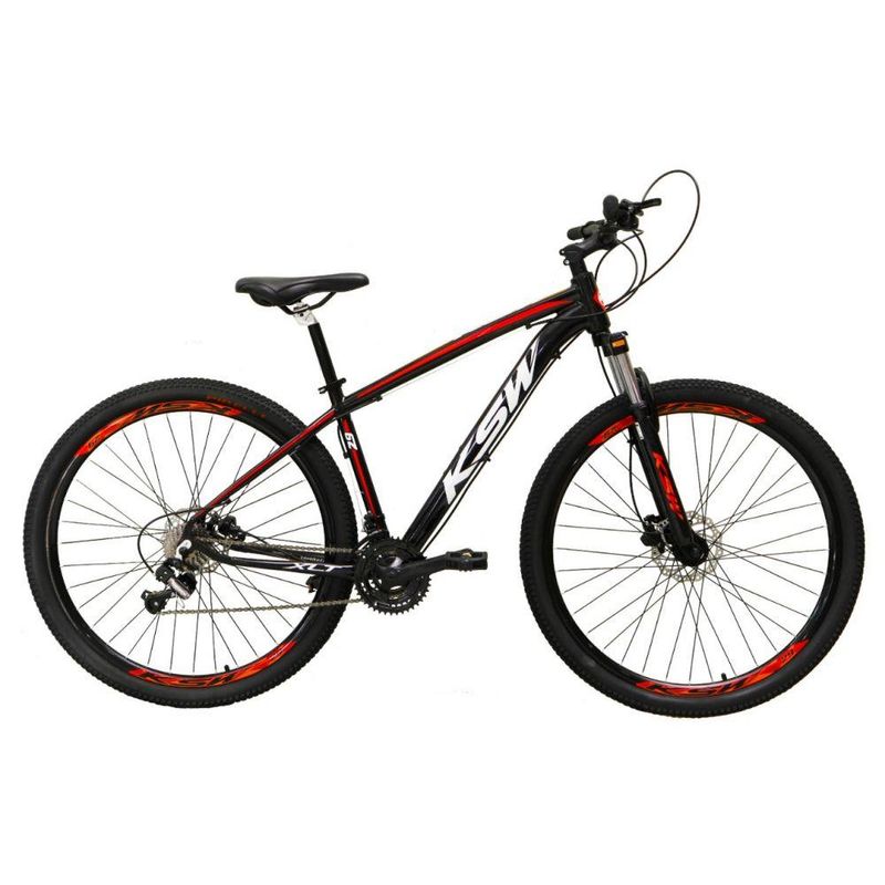 Bicicleta Aro 29 Ksw Xlt 24v K7 Câmbios Shimano Freio Hidráulico Garfo Com Trava - Preto/vermelho/branco - Tam. 17