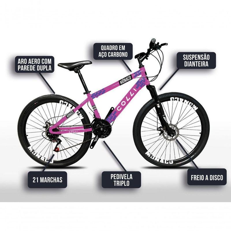 Bicicleta Colli Mônaco Aro 26 Disco 21 V Rapid Fire Cor Vermelho Tamanho Do Quadro 13,5 Lilás