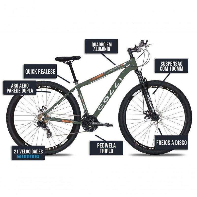 Bicicleta Colli Toronto Aluminio Aro 29 Disco-shimano 21v Verde Militar