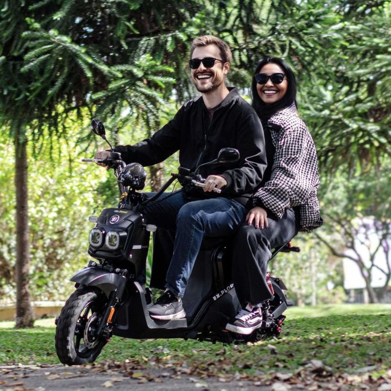 FICHA TÉCNICAModelo: Ex.plorerMotor: 1000W 60V Hub BrushlessBateria: Lítio 60V 20Ah (removível)Autonomia: Até 55 km (condições ideais)Condições ideais: Terreno plano, sem trepidações, vento a favor, piloto de até 90 kg, modo econômico ativado, clima amenoVelocidade máxima: 32 km/h (com limitação), 45 km/h (sem limitação)Níveis de velocidade: 3 níveisInclinação máxima: 30°Tempo de recarga: 6 a 8 horasCapacidade de carga: Até 150 kgBanco: Capacidade para 2 pessoasRoda/Pneu: 3.00 - 10"Pressão recomendada: 33 a 36 PSISuspensão: Dupla com mola (dianteira e traseira)Freios: Disco com corta motorProteção: IP65 (à prova de poeira e resistente a jatos leves de água)Painel: Computador de bordo com informações de velocidade, níveis de bateria, hodômetro, setas e indicador de modo de potênciaIluminação: Farol frontal, luzes de seta esquerda/direita, luz de freioChave: Inclui chave com alarme integradoPedal assistido: SimPeso: 50 kgDimensões: 150 cm (C) x 110 cm (A) x 32 cm (L)Certificações: ISO9000, MSDS, UN38.3Garantia: 1 ano (3 meses + 9 meses cortesia) – Contra defeitos de fabricação incluindo a bateria