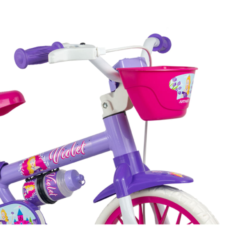• 1 Bicicleta Infantil Aro 12 Com Rodinhas Violet - Nathor