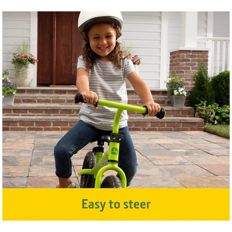 Durável e leve: esta bicicleta de equilíbrio infantil da John Deere apresenta uma estrutura de aço resistente, porém leve, que é fácil para as crianças andarem