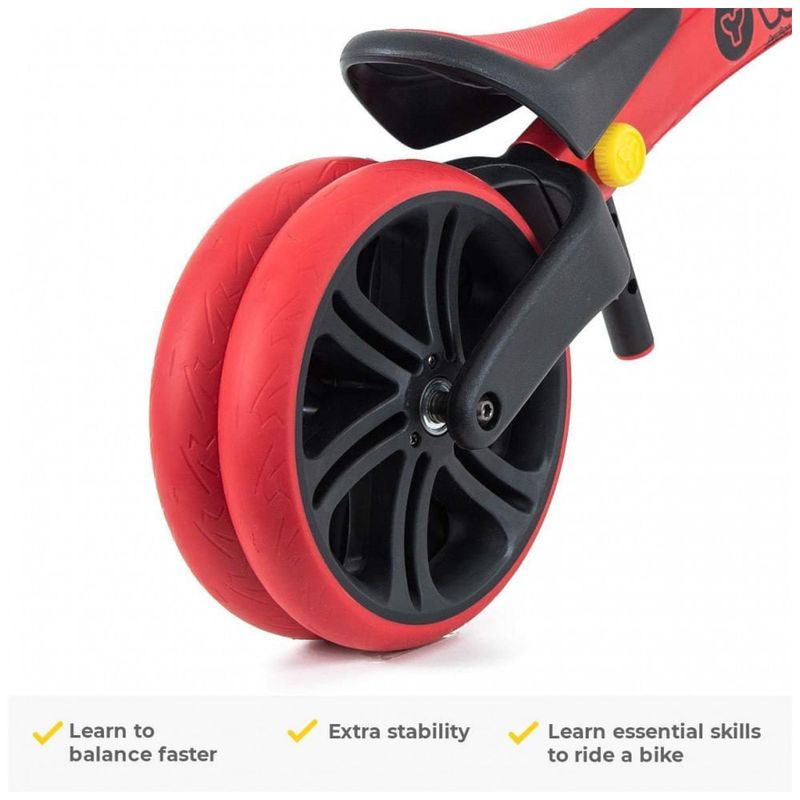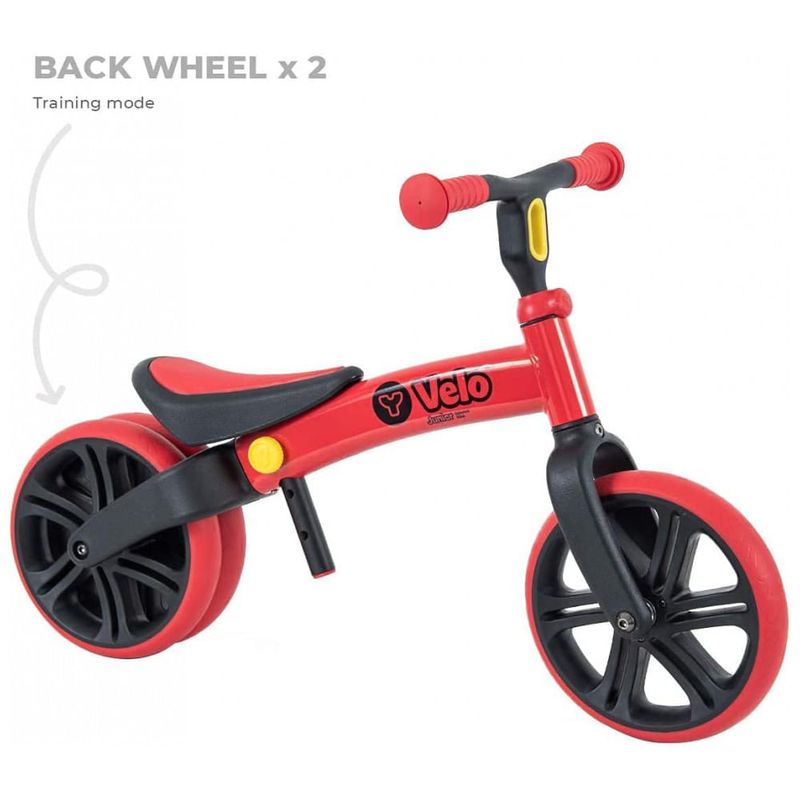 RODA TRASEIRA DUPLA ICÔNICA O Y Velo Junior permite que as crianças pratiquem com uma roda de largura dupla estável antes de mudar para uma roda única, pois aumentam a confiança. Atualizamos completamente nossas bicicletas de equilíbrio Y Velo Junior, vencedoras de vários prêmios, com s recursos e cores vibrantes, vermelho e azul.
