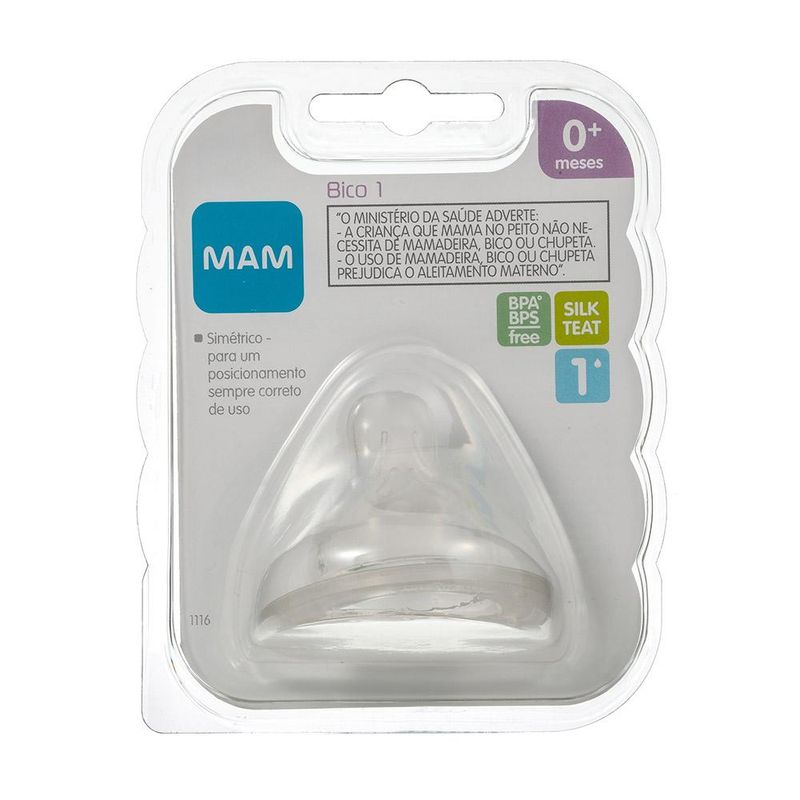 Bico de Mamadeira Fluxo Lento - Mam Baby Todos os bicos de mamadeiras da MAM possuem a tecnologia SkinSoft, textura macia e sedosa, comprovadamente aceita por 94% dos bebês. Formato simétrico para um posicionamento sempre adequado na boca do bebê. E válvula de ar estrategicamente localizada na lateral do bico para um fluxo regular. O bico 1 possui um fluxo lento e é adequado para uma criança a recém-nascidas. Selo Inmetro: CE-PUR/IQB 000153 NBR 13793/2012 ? OCP 006