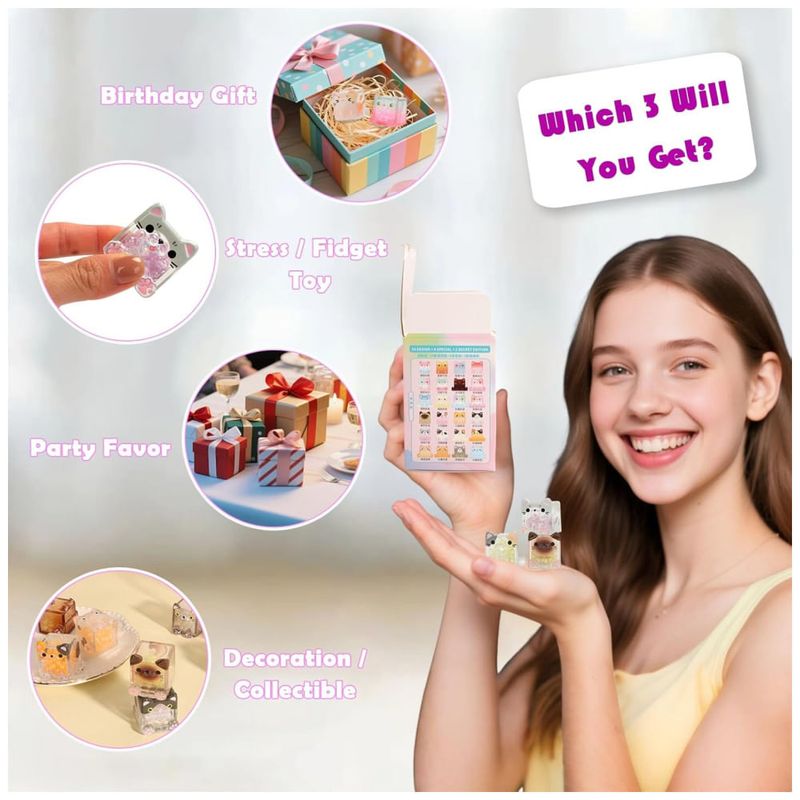 A Coleção Gato Quadrado traz figuras adoráveis em uma experiência surpresa! Cada caixa misteriosa contém três figuras do mundo dos gatos, com 24 modelos regulares, 4 edições surpresa e 2 edições luminosas para colecionar. Feitas de PVC atóxico e inodoro, as figuras possuem cores vibrantes e superfície suave de alta qualidade, garantindo segurança e durabilidade. Com 3,6 cm de altura, cada figura emite um som de chocalho ao ser sacudida, proporcionando diversão e alívio da ansiedade. As caixas são totalmente aleatórias, tornando cada unboxing uma aventura emocionante para colecionadores! Perfeito para presentear amantes de gatos, acima de 15 anos, em ocasiões como Dia dos Namorados, aniversários e Natal.