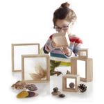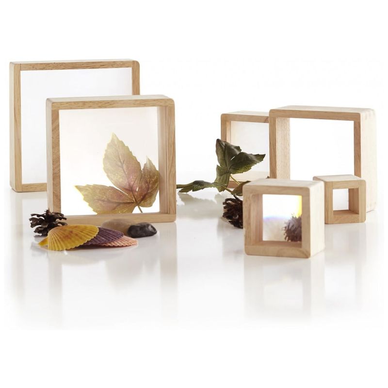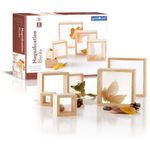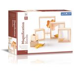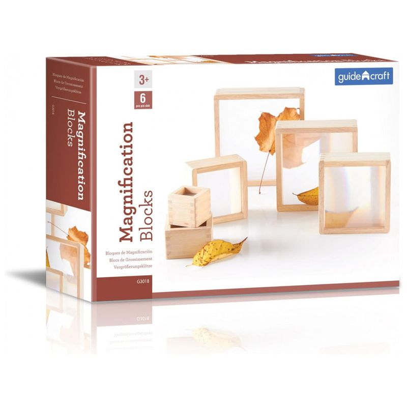 Os Blocos de Ampliação Guidecraft consistem em conjunto de 6 blocos de madeira de borracha com janelas lenticulares insetadas, proporcionando ampliação de 2x em cada unidade para observação detalhada de materiais. Os blocos variam em dimensões de 5 cm a 18 cm de lado, com cantos e bordas arredondados para empilhamento estável e seguro, intensificando a ampliação ao combinar múltiplas unidades. O material rubberwood garante rigidez estrutural, enquanto as janelas acrílicas oferecem transparência sem distorções para visualização precisa.?