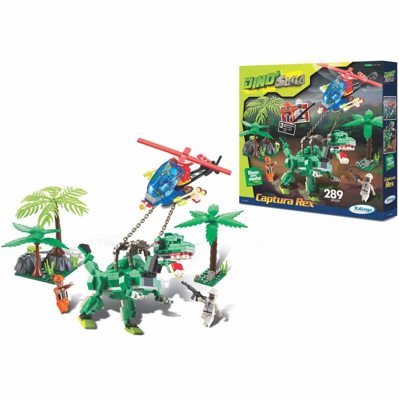 Blocos de Encaixe Dino Saga Captura Rex Dinossauros - 286 peças - Multicolorido - 6509 - Xalingo