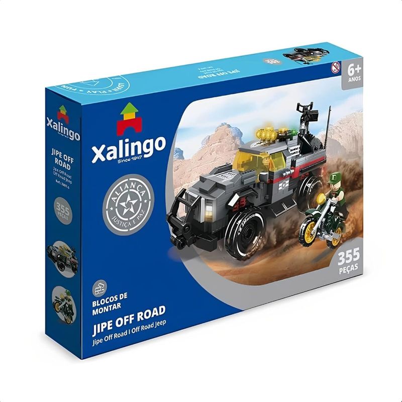 A garotada vai se divertir muito com o Blocos de Montar Aliança Justiça e Paz Jipe Off-Road! Contém 355 peças muito resistentes, leves e fáceis de montar. O brinquedo motiva a passar o tempo, através do aprender brincando, pois desenvolve a coordenação motora e habilidades de diferenciação das partes e do todo. Recomendado para crianças a partir de 6 anos.