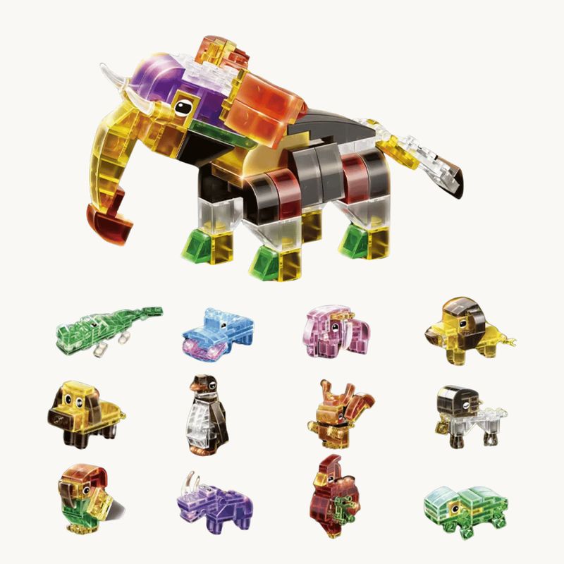 Explore um mundo de possibilidades com os Blocos de Montar Inblox Animal Cristal da Ark Toys! Colecione os 12 modelos (vendidos separadamente) de animais sortidos, cada um com seu próprio manual de montagem, e embarque em aventuras incríveis. Mas a diversão não para por aí! Una todas as 12 figuras e construa um majestoso super elefante, uma criação épica que vai te surpreender. Solte sua imaginação, desenvolva suas habilidades e desfrute de horas de entretenimento com este brinquedo que combina desafio, criatividade e diversão em um só produto.