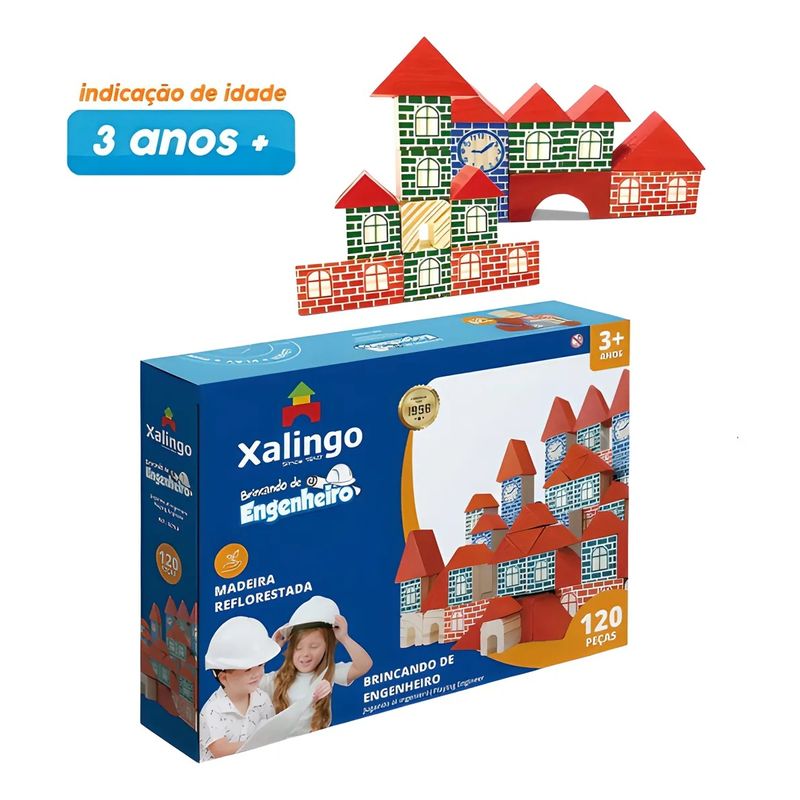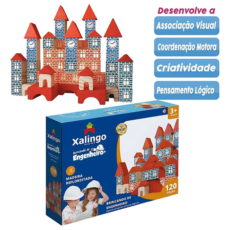 Blocos De Montar em Madeira Engenheiro 120 Peças - Xalingo