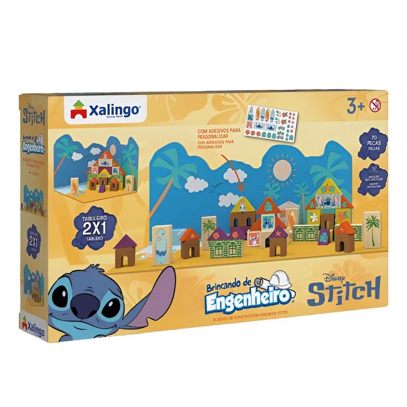 O Brincando de Engenheiro Stitch da Xalingo vai encantar as crianças com a magia da Disney! Composto por 70 peças em madeira reflorestada, é um brinquedo sustentável, seguro e cheio de diversão.