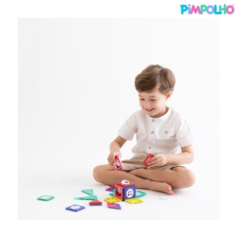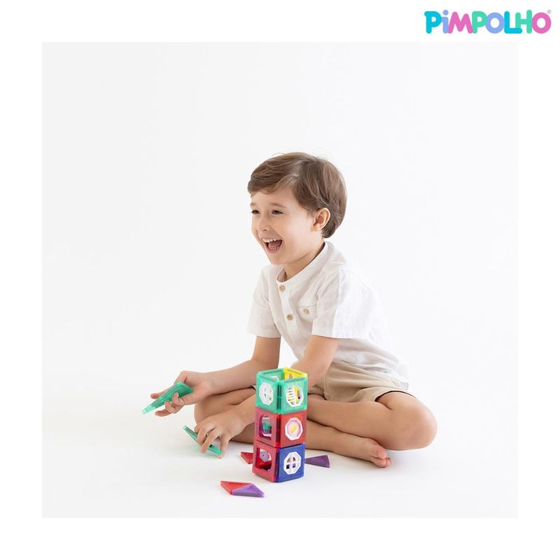 Indicado para crianças a partir de 3 anos.1. Quantas peças vêm no kit de blocos magnéticos Pimpolho?