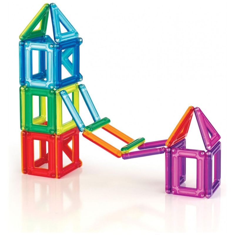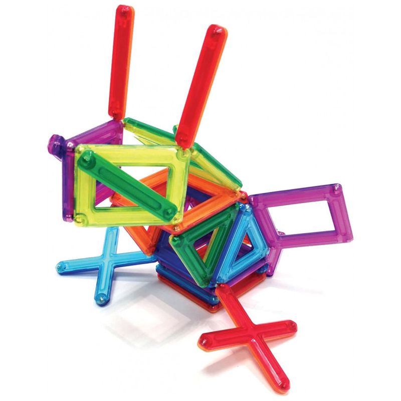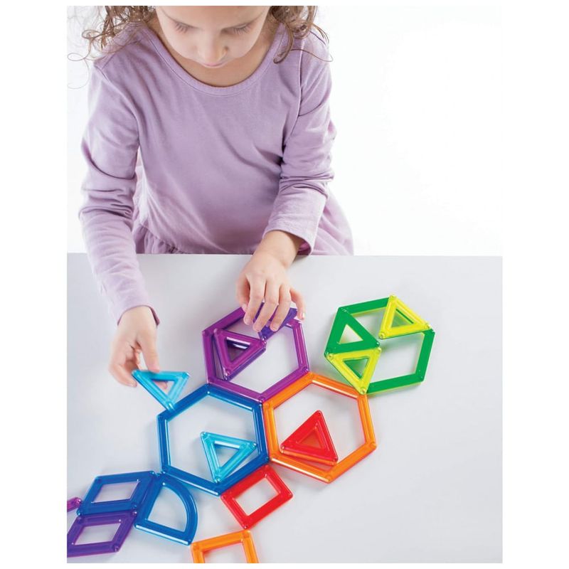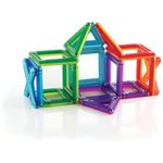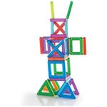 O conjunto Guidecraft PowerClix Frame com 26 peças é um kit de blocos magnéticos voltado para construções abertas em 2D e 3D, estimulando criatividade, raciocínio espacial e coordenação motora fina em crianças a partir de 4 anos. As peças em plástico ABS translúcido multicolorido utilizam ímãs de neodímio internos com sistema de clique e conexão, facilitando o encaixe entre formas geométricas sem repulsão magnética.?