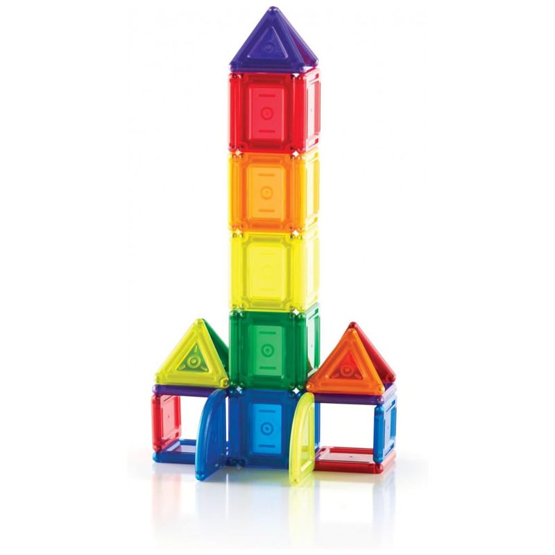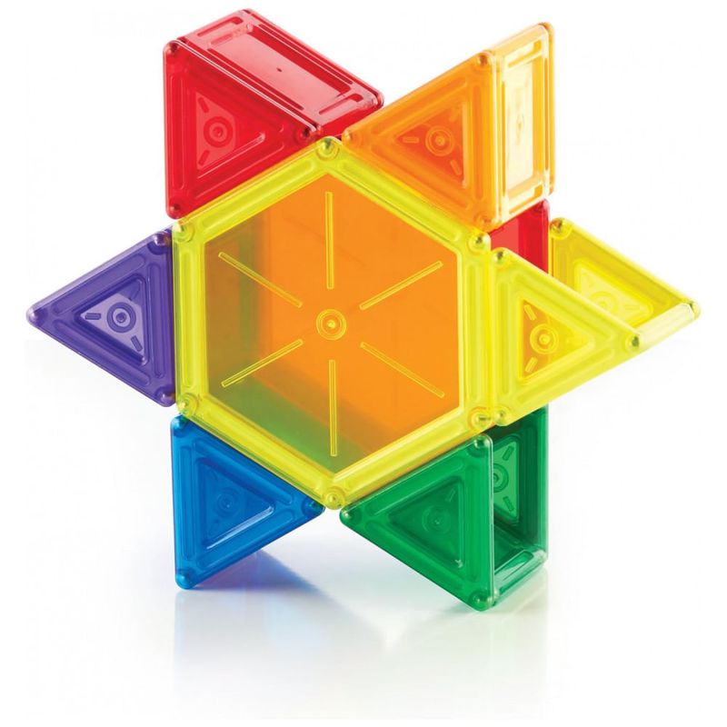 O conjunto Guidecraft PowerClix Solids é um kit de blocos magnéticos desenvolvido para construções abertas em duas e três dimensões, com foco em habilidades de pensamento espacial, criatividade e exploração de conceitos geométricos em crianças a partir de 3 anos. As 70 peças em plástico ABS translúcido, em cores variadas, possuem ímãs de neodímio internos com sistema de clique e conexão que facilita o encaixe e evita repulsão entre as peças.?