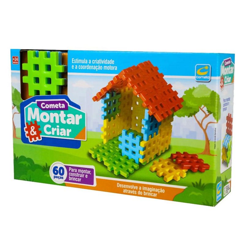 Blocos Montar e Criar com 60 peças - Cometa Os Blocos de Encaixe são ótimos para estimular a criatividade e coordenação motora, permitindo através do lúdico o desenvolvimento do raciocínio lógico e a cognição das crianças. Os Blocos são fabricados em PEBD, seguro e certificado pelo Inmetro. Caixa Contendo 60 blocos. Selo Inmetro: CE-BRI/IQB 006268 NM 300/0002- OCP 006
