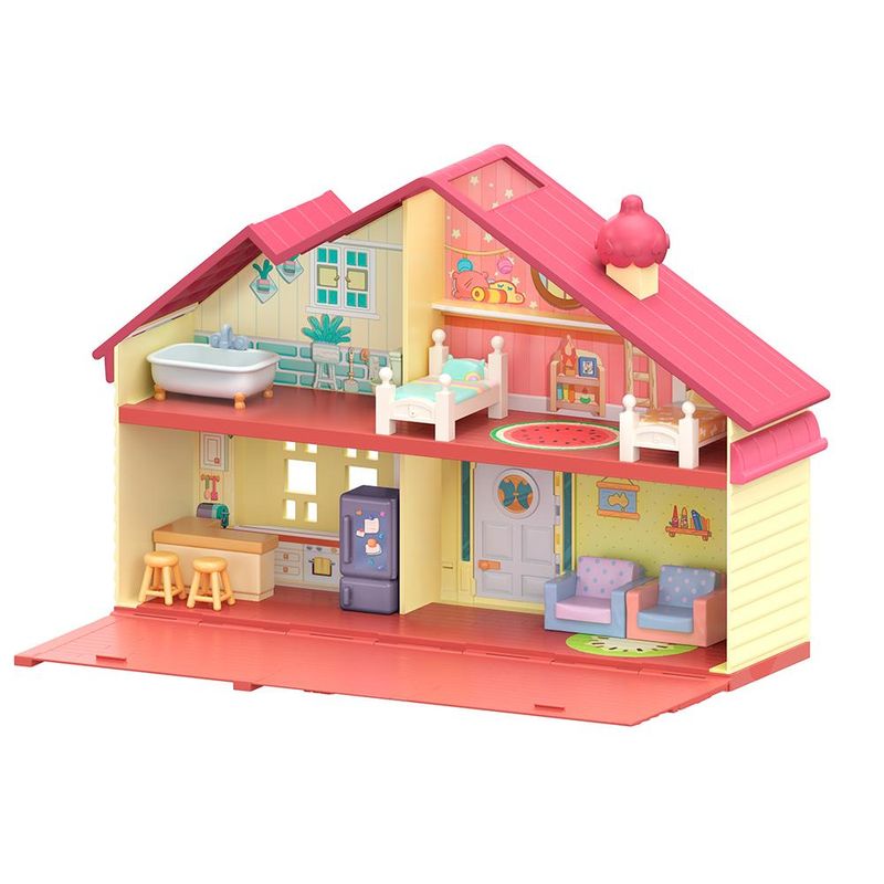 Grande em tamanho e recursos, este enorme Playset é cheio de detalhes. Há muito espaço para Bluey e sua família brincarem em quatro cômodos diferentes - sala de estar, cozinha, quarto e banheiro. Com muitos móveis removíveis, incluindo 2 camas, 2 banquetas, 2 sofás, 2 tapetes, banheira, vaso sanitário, balcão da sala de jantar e geladeira, há muito o que fazer nesta linda casa. Uma figura de Bluey também está incluída na Casa da Família. A brincadeira ficará muito mais divertida com o Family Home Playset da Bluey!