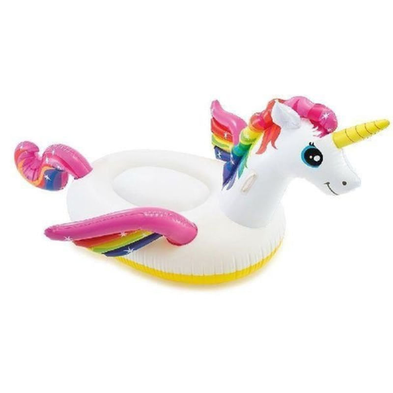 Pois com este colchão de unicórnio tornará o seu sonho realidade! A tendência deste verão é dar um mergulho sobre um unicórnio aquático e com este modelo de flutuador de 2,01 cm de largura, 1,40 cm de profundidade e 97 cm de altura vai ser o centro das atenções. Tem um desenho muito colorido com o chifre e a base em amarelo, o corpo branco e o rabo e as asas com diferentes tons do arco-íris.