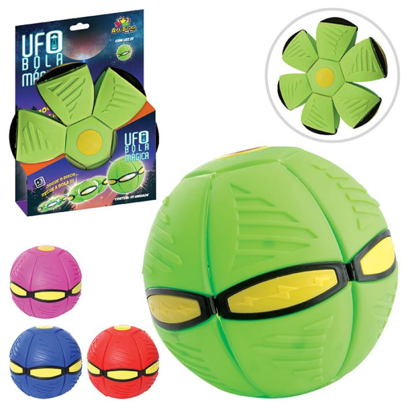 A bola mágica se transforma em um divertido disco voador que, após alguns segundos, retorna a forma original de bola. Essa troca de formas permite que as crianças se divirtam por horas, acompanhadas ou sozinhas. Seu design emborrachado permite que a bola/disco seja arremessada a longas distâncias, sendo uma ótima opção para brincadeiras ao ar livre. Características: - Conteúdo da Embalagem: Não informado- Marca: Art Brink- Modelo: 7899658326258- Dimensões da Embalagem: 30cm, 25cm, 10cm- Código de Barras: 7899658326258- Alimentação: Não informado- Certificação: INMETRO Recomendado para maiores de 3 anos. Importante: - Nossos produtos encontram-se em estoque- Todos os produtos são lacrados- Produtos acompanham nota-fiscal e garantia