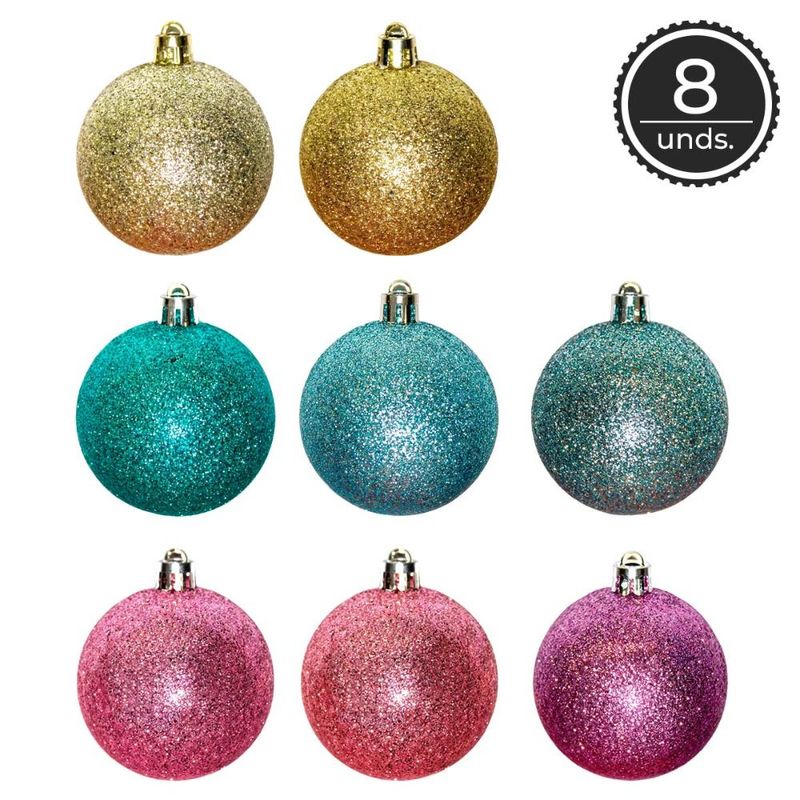 Itens inclusos:08 Bolas Decorativas com Glitter Dimensões do produto: