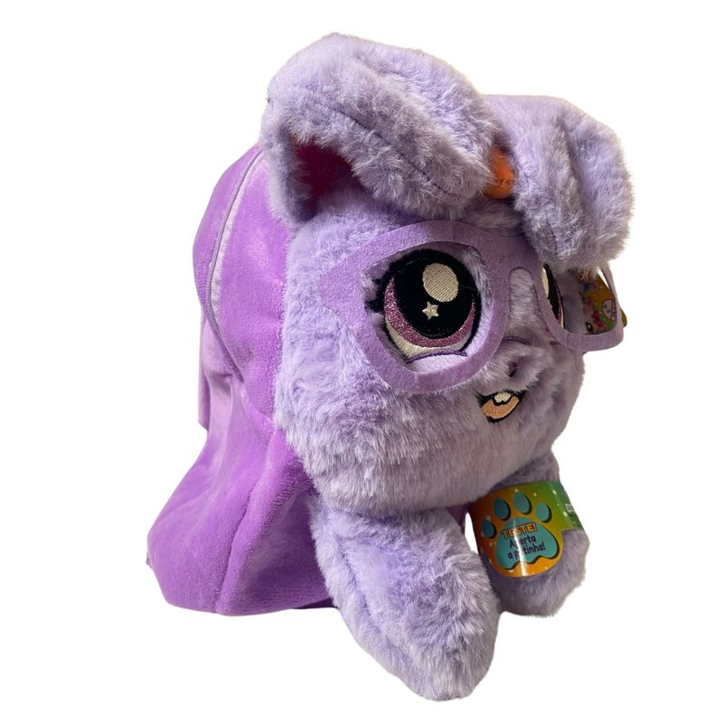 Bolsa Infantil Pet Coelho Roxo Levanta Orelhinhas - Polibrinq Informações do Produto: Leve seu amiguinho de pelúcia para passear com estilo para todos os lugares. Com toque mágico, aperte as patinhas e veja as orelhinhas levantarem, garantindo um sorriso em cada jornada. Compartimentos internos forradas e zíper reforçado proporcionam segurança para os objetos importantes, enquanto a alça de mão e transversal oferece praticidade e conforto durante todo o trajeto. Sugestão de uso: Ideal para carregar acessórios, pequenos brinquedos, e muito mais. Itens inclusos: 1 bolsa. Dimensões aproximadas do produto: 30x20cm. Recomendado: Não recomendado para menores de 3 anos de idade. Alimentação: Não necessita. Material composição: Poliéster e pvc. Certificação: Registro inmetro 001550/2022. Ocp 0098. Garantia do Fabricante: 03 meses contra defeitos de fabricação. Aviso: Todas as informações divulgadas são de responsabilidade exclusiva do fabricante/fornecedor. As cores dos tecidos ou dos produtos podem variar entre as imagens mostradas acima ou fotos da embalagem. Imagens meramente ilustrativas.