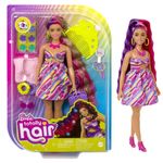 Inspirada na boneca Barbie mais vendida que fez ondas pela primeira vez há 30 anos, a boneca Barbie Totally Hair com tema de flores balança seu próprio penteado, textura de cabelo e aparência de moda! A boneca tem 22 centímetros de cabelo jogável extra-longo e vem com mais de 15 peças adicionais, incluindo 8 grampos de cabelo de mudança de cor, acessórios de estilo e uma moda extra. A boneca Barbie tem uma forma de corpo curvilínea e vem com listras de blocos de cor rosa e roxo brilhantes em seu cabelo ondulado que também tem um rabo de cavalo no topo. Ela usa um vestido estampado de margaridas vibrante com um detalhe recortado. As crianças vão adorar criar penteados diferentes e as infinitas possibilidades de estilo! Boneca não pode ficar sozinha. Cores e decorações podem variar. Para crianças a partir de 3 anos.