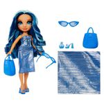 O QUE ESTÁ INCLUÍDO: Boneca fashion, maiô removível, par de sandálias de boneca, envoltório brilhante, óculos de sol e bolsa.