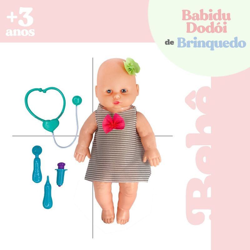 Esta boneca é a companheira perfeita para brincadeiras que ensinam cuidados e responsabilidades de uma forma divertida e envolvente.Com um design fofo, a boneca foi feita para que a criança tenha uma ótima imersão na hora da brincadeira com acessórios de medicina.As crianças vão adorar cuidar a boneca como se fosse um bebê de verdade, sendo uma maneira incrível de desenvolver habilidades de cuidado, empatia e imaginação enquanto se divertem. Além disso, conta com estetoscópio, termometro e otoscópio.Feita com materiais de alta qualidade, a boneca possui uma excelete durabilidade, perfeita para ser usada em muitas brincadeiras sem se preocupar com a integridade da boneca A boneca conta com:-01 Estetoscópio-01 Termometro-01 Otoscópio -Não recomendado para menos de 03 anos por conter partes pequenas que podem sem engolidas ou aspiradas.
