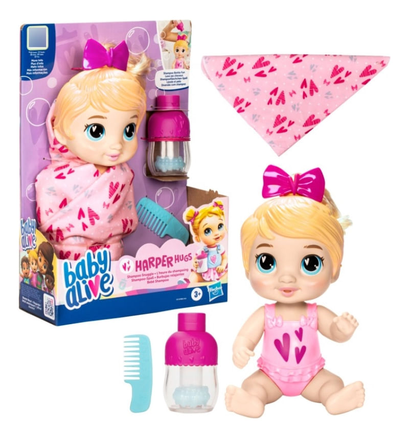 As crianças irão se divertir na hora do banho com sua nova amiga Baby Alive Bebê Shampoo! As crianças podem inclinar o frasco para ver as bolhas de mentirinha subirem e descerem!