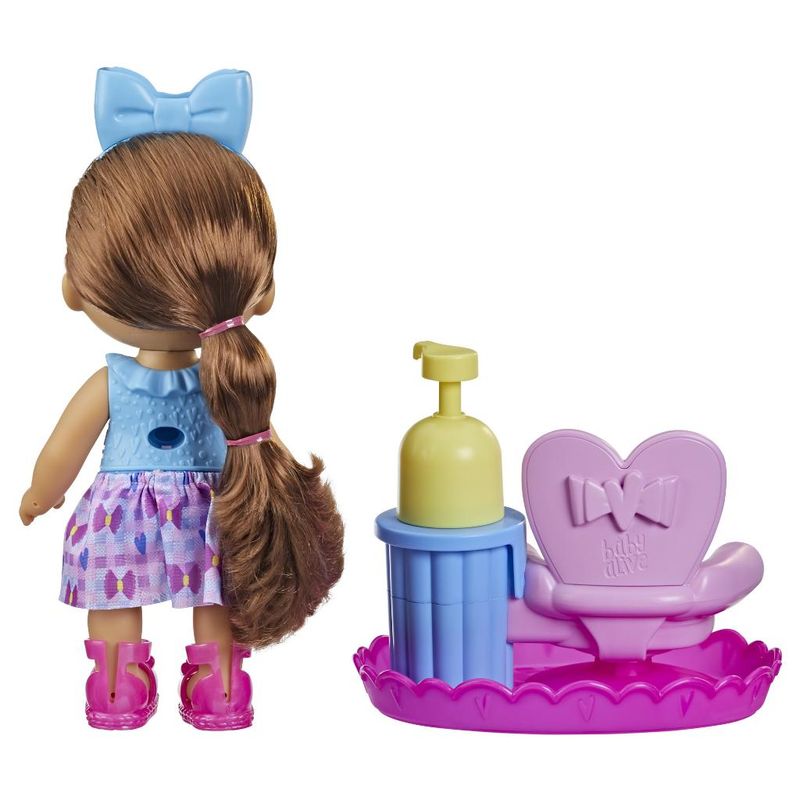 Lindos cabelos borbulhantes. As crianças podem colocar a boneca na cadeira de salão de beleza e criar penteados com as bolhas de sabão. Esta boneca Baby Alive de 30 cm vem com uma cadeira de salão e acessórios como pente, ferramenta de beleza, secador de cabelo, espelho e presilha. As crianças a partir dos 3 anos podem misturar água e sabão no copinho, colocar na cadeira e apertar o shampoo para ver as bolhas saírem pela cabeça da boneca. As crianças podem usar os acessórios para moldar as bolhas de sabão e usar o espelho para admirar o resultado final. As crianças podem brincar várias vezes. Basta usar o shampoo de bebê ou solução de bolhas de sabão para brincar novamente. Excelente presente de aniversário ou outras celebrações para meninos e meninas. Baby Alive and all related properties are trademarks of Hasbro.