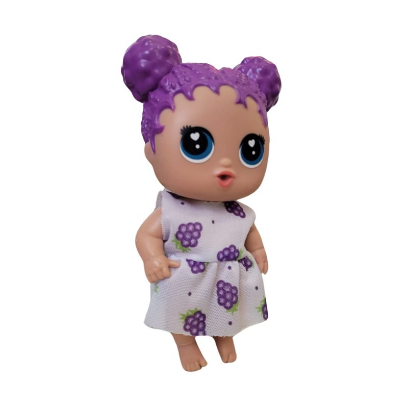 Boneca Baby Buddies Sabores Uva - Bambola Informações do Produto: A boneca baby buddies sabores uva é uma adorável boneca da marca bambola, que se destaca por seu cabelinho colorido e uma roupinha com estampa de uvas. Com aproximadamente 19,5cm de altura, ela é feita de vinil atóxico, um material seguro para crianças a partir de 3 anos. Além de ser uma companhia divertida para as crianças, a boneca é projetada para estimular a criatividade e a imaginação dos pequenos. Itens inclusos: 1 boneca. Dimensões aproximadas do produto: 19,5cm. Recomendado: Não recomendado para menores de 3 anos de idade. Alimentação: Não necessita. Material composição: Vinil e roupa em tecido. Certificação: CE-BRI/BRICS 00512-17 NM 300/2002. Ocp 0098. Garantia do Fabricante: 03 meses contra defeitos de fabricação. Aviso: Todas as informações divulgadas são de responsabilidade exclusiva do fabricante/fornecedor. As cores dos tecidos ou dos produtos podem variar entre as imagens mostradas acima ou fotos da embalagem. Imagens meramente ilustrativas.