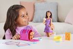 Barbie Barbie Adota um Cachorrinho Fabricante: Mattel. Coleção: Barbie Tamanho: 29 cm de altura. A Barbie® vai adotar cachorrinhos com o conjunto Pup Adoption™. As peças para contar histórias permitem que os jovens amantes de bichinhos se tornem novos tutores de cães e cuidem, alimentem e treinem dois adoráveis filhotes. A transformação com a mudança de cor acrescenta diversão à brincadeira na hora de comer e de usar o banheiro, e uma caixa de transporte de animais amplia a brincadeira do cuidado. A boneca não fica em pé sozinha. As cores e as decorações podem variar.