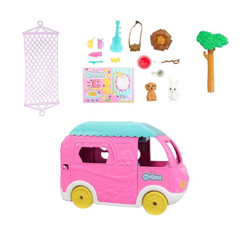 Prepare-se para a aventura mais divertida com a Chelsea e seu trailer 2 em 1! Esse incrível conjunto da Mattel transforma o passeio em uma experiência inesquecível. O trailer se abre para revelar um acampamento completo com cozinha, área de refeições e até um quarto para a Chelsea e seus pets de estimação! A criançada vai adorar explorar a natureza, preparar refeições, tocar violão e até dar um mergulho na piscina inflável. Com tantos detalhes e acessórios, a imaginação não tem limites!