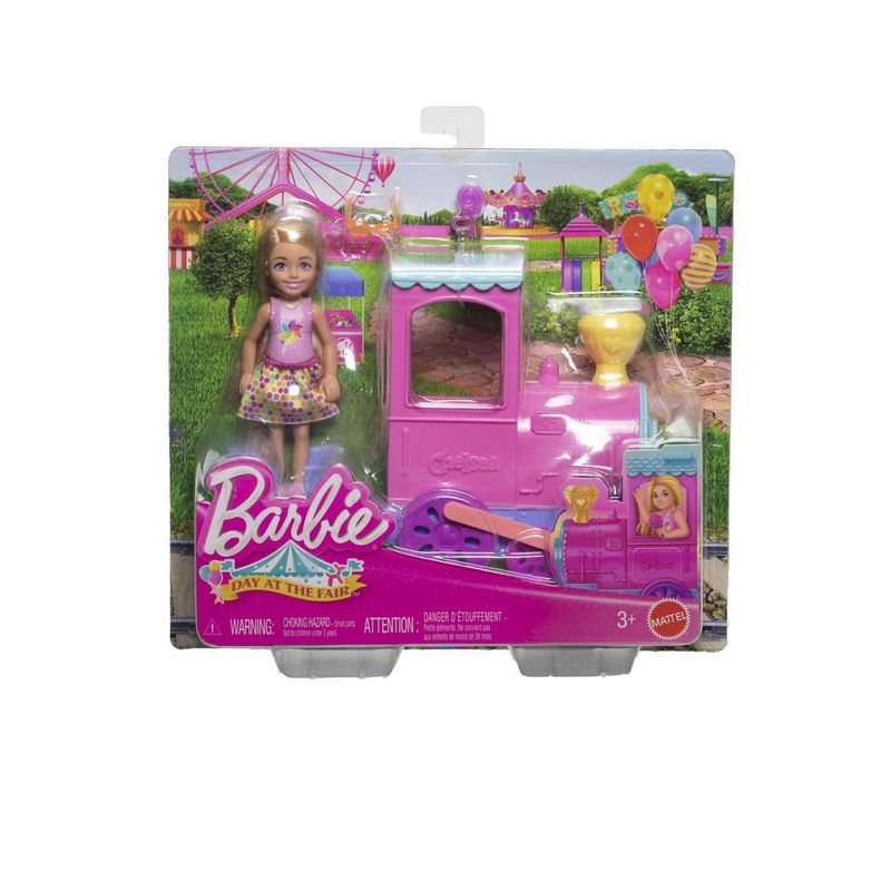 Todos a bordo com Chelsea! O Conjunto Chelsea Dia na Feira traz muita diversão, com um trem de brinquedo de 10 rodas que realmente rolam e um carro acoplável. Ajude a boneca Chelsea a subir no trem e depois empurre para começar as aventuras! Os acessórios incluem óculos de sol de estrela e um pirulito que realmente encaixa na mão da boneca Chelsea. As crianças têm tudo o que precisam para viver um dia de feira cheio de diversão e magia. As cores e as decorações podem variar. A boneca não pode ficar em pé sozinha.