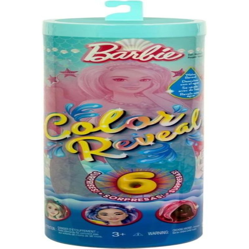 As bonecas Barbie Color Reveal proporcionam uma experiência cheia de surpresas. As crianças encontrarão uma das quatro bonecas exclusivas desta série de sereias - cada uma com cabelos longos com listras brilhantes que mudam de cor. Qual boneca você vai revelar? Retire a camada externa da embalagem, abra o tubo e retire uma boneca Barbie fashion, cujo visual de sereia é coberto por um revestimento Color Reveal e bolsas surpresa.