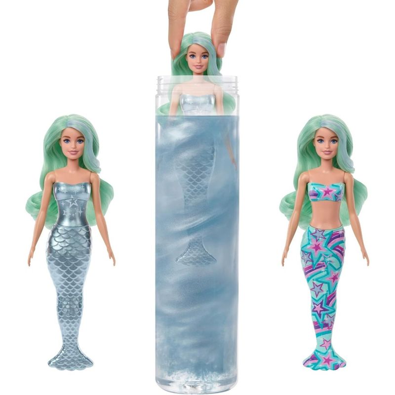 As bonecas Barbie Color Reveal proporcionam uma experiência cheia de surpresas. As crianças encontrarão uma das quatro bonecas exclusivas desta série de sereias - cada uma com cabelos longos com listras brilhantes que mudam de cor. Qual boneca você vai revelar? Retire a camada externa da embalagem, abra o tubo e retire uma boneca Barbie fashion, cujo visual de sereia é coberto por um revestimento Color Reveal e bolsas surpresa.