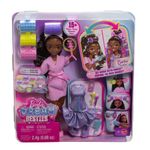 Ajude a Barbie "Malibu" e a Barbie "Brooklyn" a se prepararem para uma noite super divertida — é hora do glamour! A boneca GET READY WITH BARBIE™ Barbie "Brooklyn" Dream Besties incentiva as crianças a expressarem seus sentimentos por meio da moda e da maquiagem. A brincadeira começa com a Barbie vestindo seu roupão e relaxando com a clássica máscara de pepino nos olhos antes da grande noite. Ao abrir os bobs de cabelo, as crianças encontram surpresas incríveis, como giz para colorir o cabelo e um laço oversized cheio de estilo! A Barbie pode continuar com o roupão enquanto faz o penteado e, quando estiver pronta, é só colocar seu vestido brilhante e os saltos para completar o visual. Para finalizar, ela pode retocar a maquiagem usando sua paleta e os pincéis que acompanham o conjunto.