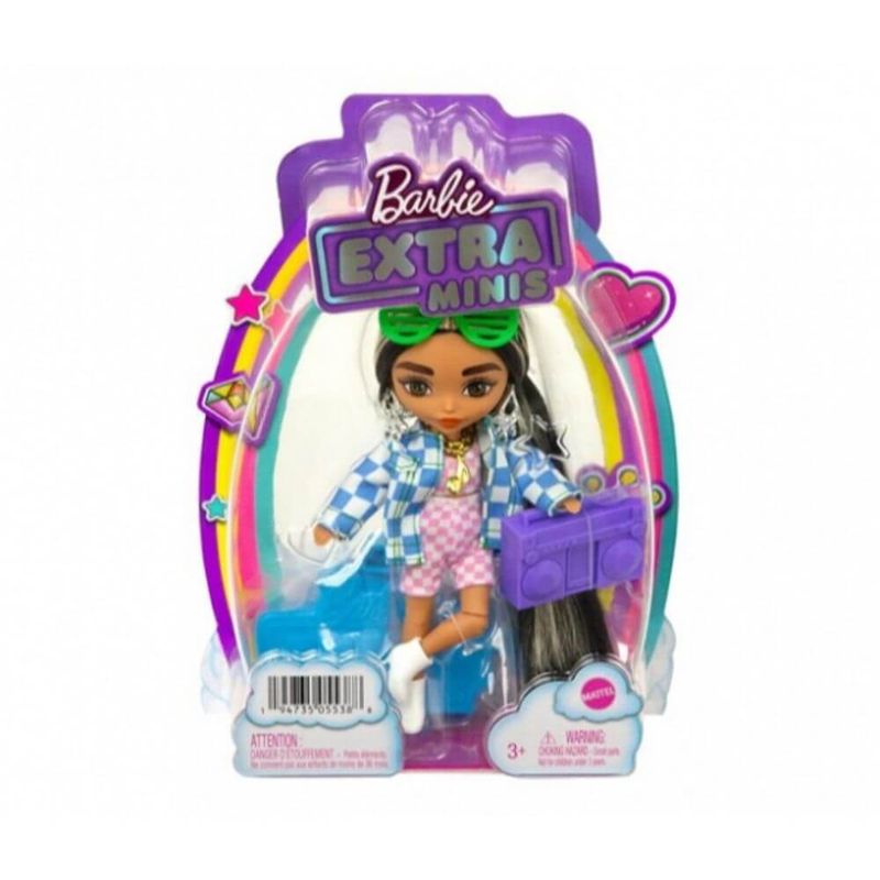 Boneca Barbie Extra Minis - 15cm Blusa Xadrez - Mattel HGP62/HGP64