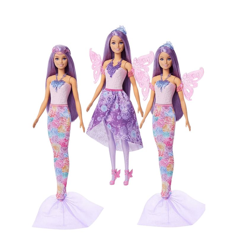 A brincadeira ganha asas e mergulha na imaginação com a boneca Fada e Sereia 2 em 1 da Mattel! Com design encantador, ela se transforma de fada a sereia em instantes, estimulando a criatividade e a contação de histórias. Perfeita para aventuras mágicas, oferece duas formas de diversão em um só brinquedo.