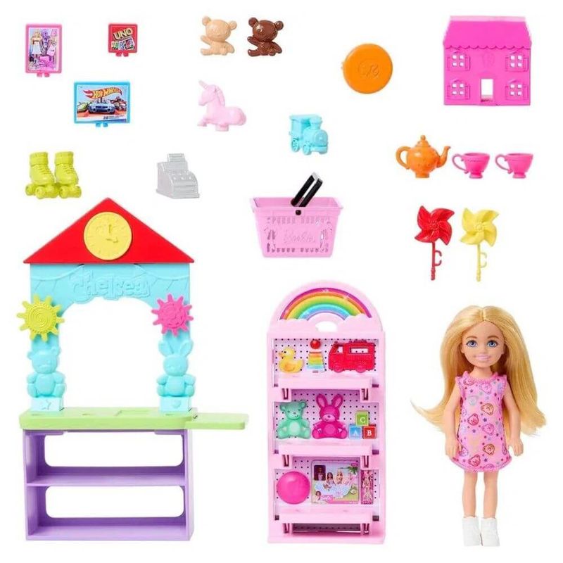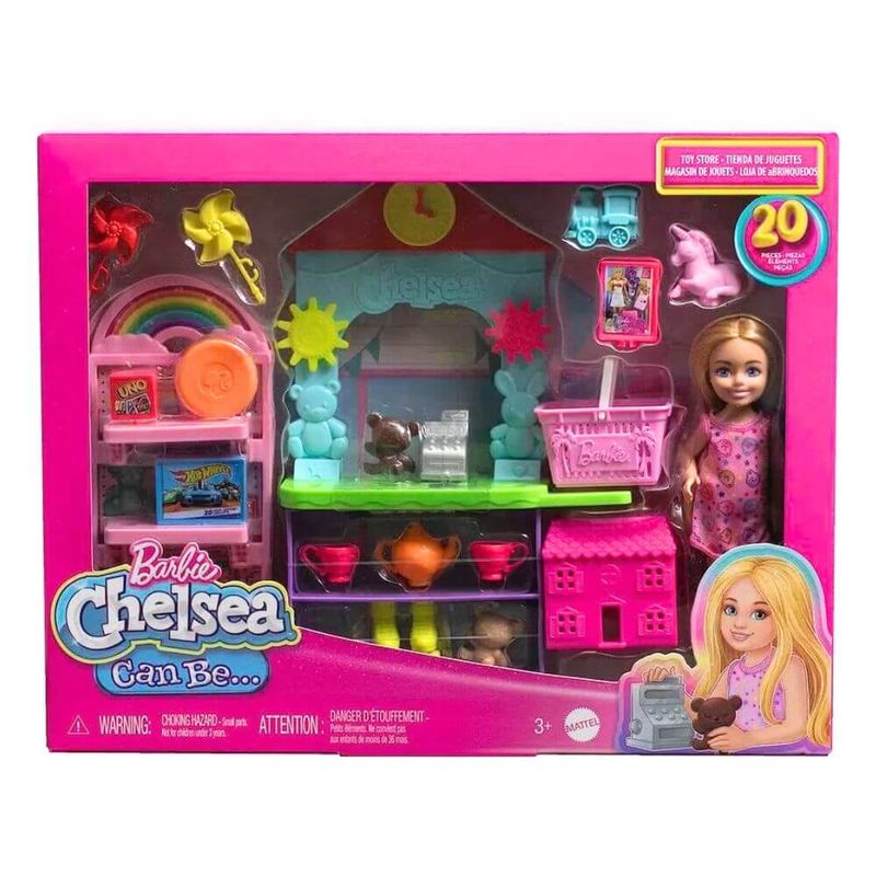 Abra o Playset Barbie Chelsea Can Be... Toy Store e Dê Asas à Imaginação com a Boneca Chelsea, Móveis de Loja e Mais de 15 Peças Para Contar Histórias, Incluindo Mini Brinquedos.