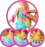 -Com suas flores iridescentes, nadadeiras ombreadas e faixa de cabelo com pérolas em seu lindo cabelo longo e loiro com mechas cor-de-rosa, essa boneca Barbie sereia é tão encantadora quanto um jardim submarino.