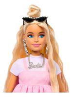 -Ninguém faz Barbiecore melhor do que a própria Barbie. Vestida com o rosa característico da Barbie, essa boneca tem cabelos loiros ondulados parcialmente presos em um coque!