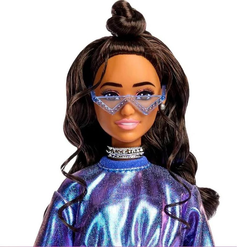 -Essas bonecas Barbie Deluxe Style elevam o glamour a outro nível, com outfits deslumbrantes e acessórios sofisticados inspirados em uma estética metálica! -Esta boneca Barbie é a definição de metálico com um outfit brilhante! Seu suéter azul gelo e cropped combina perfeitamente com uma saia de babados -Ela tem um corpo pequeno e cabelos castanhos ondulados, penteados em um topete. Brincos geométricos, uma gargantilha brilhante e um cinto de corrente com pingente de coração completam seu visual superes tiloso! -A Barbie usa óculos escuros azuis, uma bolsa de cristal e botas prateadas como acessórios. -Suas articulações flexíveis permitem que ela faça todos os tipos de poses estilosas! -Crianças a partir de 4 anos podem conhecer todas as bonecas Barbie Deluxe Style, para se inspirar na exploração da moda e na diversão de estilo ao longo dessa linha diversificada! Características: Marca - Mattel Cód. JFP42 Tamanho - 30 Cm